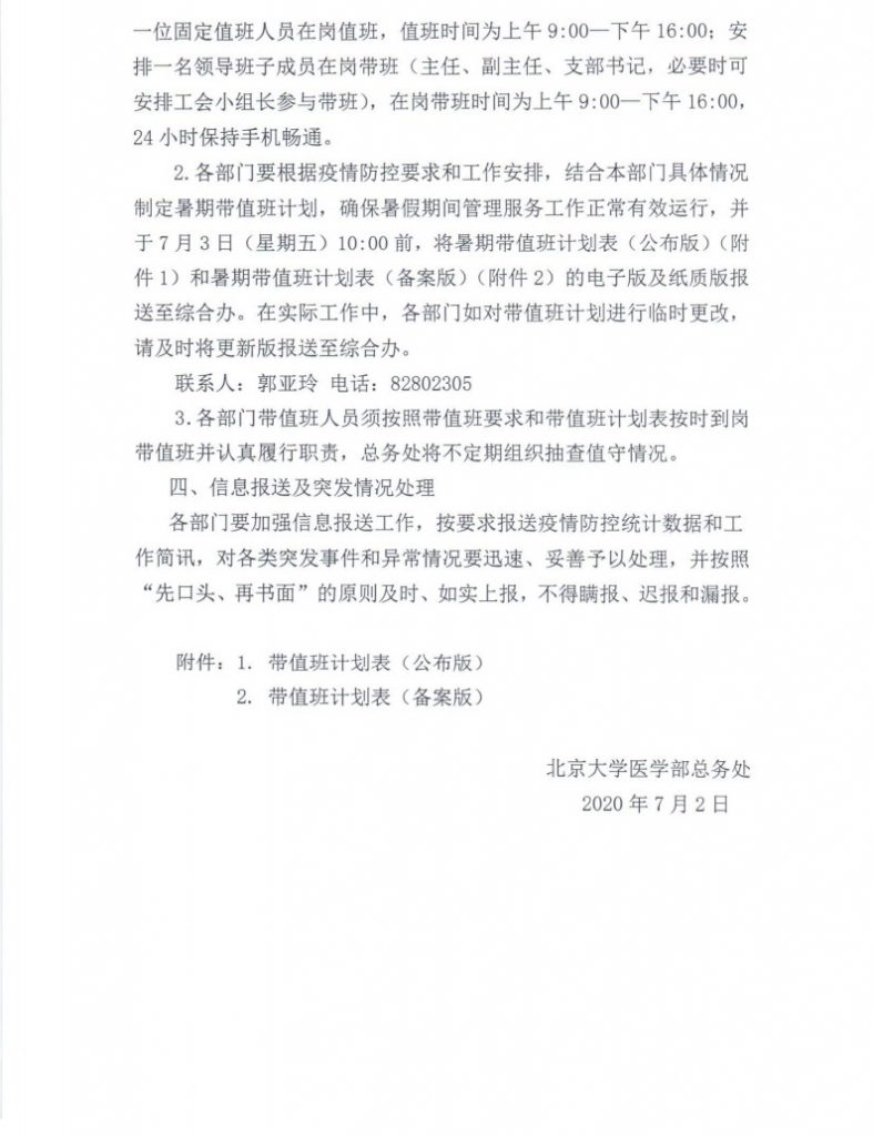中共北京大学医学部后勤委员会关于表彰优秀共产党员的决定2020-06-30办理部医院新生入学手续流程2020-07-02 2020-07-02 附件1.带值班计划表(公布版)下载 附件2.带值班计划表(备案版)下载 相关文章2025-12-01关于对医学部后勤党委开展巡视工作的公告阅读更多2025-11-22关于公布北京大学医学部2025年12月新增符合住房补贴申请资格的教职工名单(第二榜)的通知阅读更多2025-11-19关于公布北京大学医学部2025年12月新增符合住房补贴申请资格的教职工名单(第一榜)的通知阅读更多