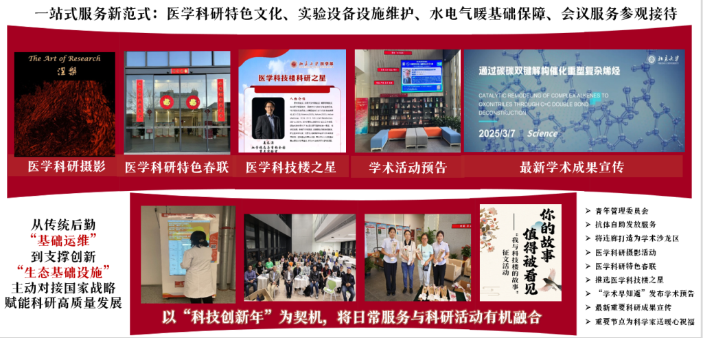 医学科技楼作为科研阵地的主战场,为科研服务按下“快进键”,以“科研生态伙伴”的全新身份,重新定义科研楼宇服务的价值边界,从传统后勤的“基础运维” 到支撑创新的“生态基础设施”,主动对接国家战略,赋能科研高质量发展。
