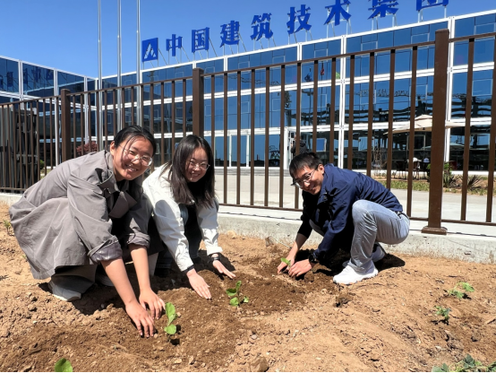 活动现场,师生、物业、施工单位共同参与植树、种菜,参与劳动,在实践中学习技能、感悟劳动价值、弘扬劳动精神。