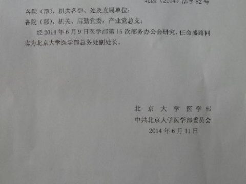 关于盛路同志任职的通知