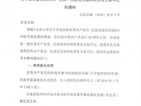 关于推荐提名优秀共产党员、先进党支部和优秀党支部书记的通知