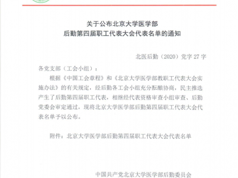 关于公布北京大学医学部后勤第四届职工代表大会代表名单的通知