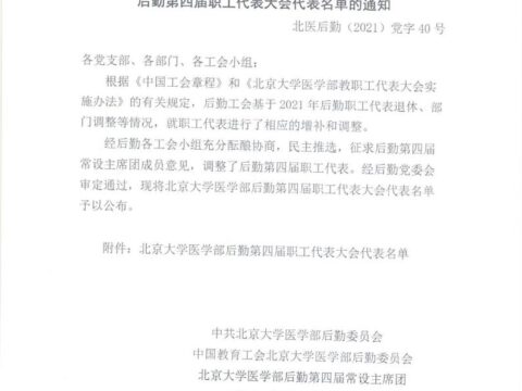 关于公布北京大学医学部后勤第四届职工代表大会代表名单的通知