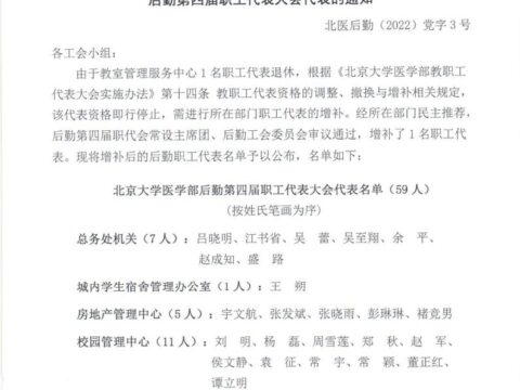 关于调整、增补北京大学医学部后勤第四届职工代表大会代表的通知